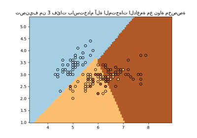 رسم مخططات لمصنفات SVM المختلفة في مجموعة بيانات الزهرة