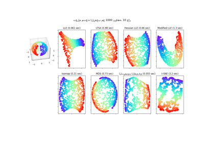 تعلم متعدد الشعب على الأرقام المكتوبة بخط اليد: التضمين الخطي المحلي، Isomap...