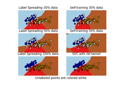 حدود القرار للمصنفات شبه المُشرفة مقابل SVM على مجموعة بيانات Iris