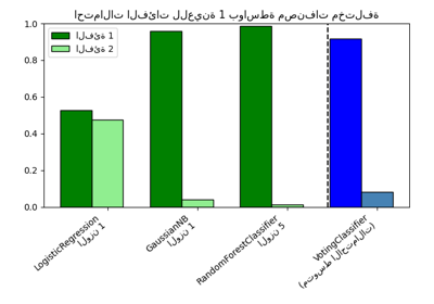 رسم احتمالات الفئات المحسوبة بواسطة VotingClassifier